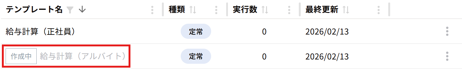 テンプレート名の左側に「作成中」が表示されるようになり、一覧画面で状態を確認できるようになりました。