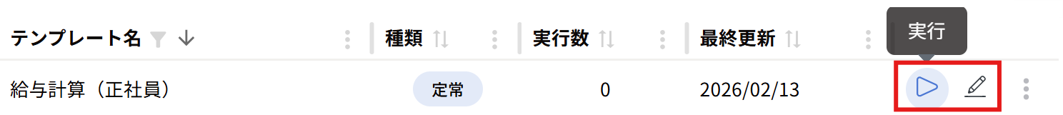 テンプレートの「プレビュー」「実行」は、編集画面や[︙]メニューを開いて実行する必要がありました。