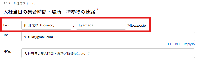送信元ドメインの設定が完了すると、メール送信フォームに「From」欄が表示されます。