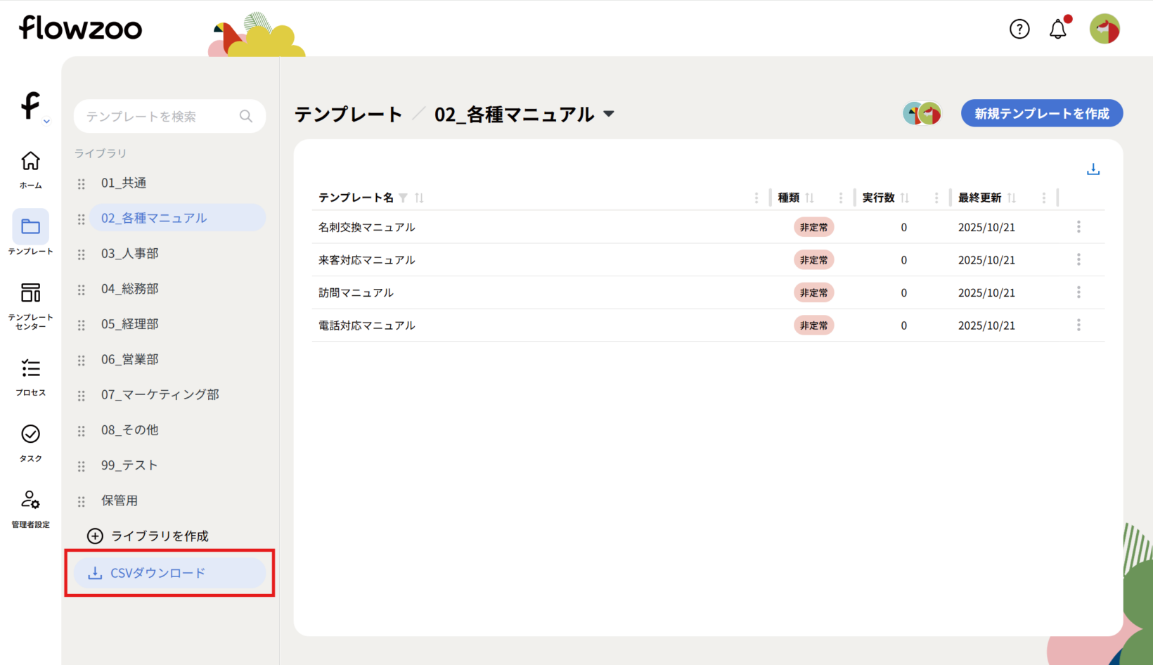 ライブラリとは、部署やプロジェクトなどのテーマ別にテンプレートを保管できる機能です。