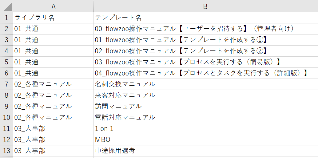 ワークスペース内にあるすべてのライブラリ名とテンプレート名を、CSV形式でエクスポートできます。